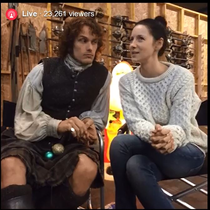 Sam Heughan and Caitriona Balfe gave Outlander Fans a special treat today – Live Streaming a Chat on Facebook. The chat lasted only about 15 minutes but was wide-ranging as they took questions from fans.