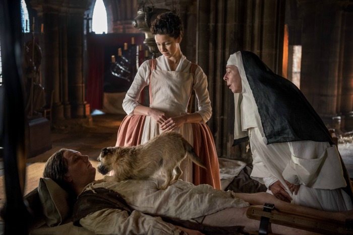In L’Hopital we are introduced to two more major characters for this story, Mother Hildegarde and Bouton. But we are introduced in a very organic and not forced method. It flows with the story. I have seen some criticism about the omission of the first encounter Jamie has with Bouton. Although that would have been a nice scene to view, it is not NECESSARY. It would only be stopping the rhythm of the story to satisfy the book reader. Maybe they did film that scene and it will be in the extras. If not, you can always go back and read the book, it’s right there for you.