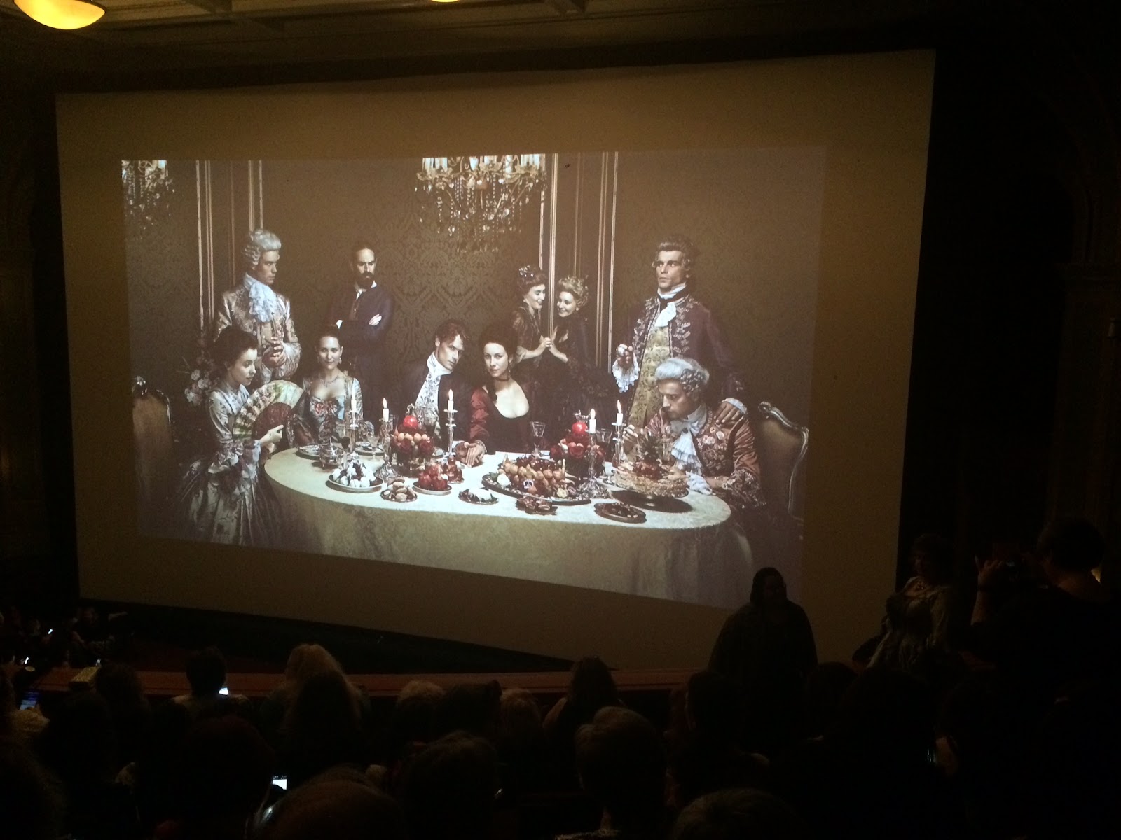 In the earthly strata of the Outlander Starz universe, I know that I hover over the ozone layer while Outlander Starz is at the molten core. I know this, yet I am unsettled as all get-out and it takes me 48 or so hours to process the experience. My feelings, in case YOU have a concussion and therefore maybe misread my tone, are that I felt like the fans were herded like well-dressed cattle into a lovely theatre, relegated to a safe and segregated distance from the expectations that my mind fabricated for the event. I feel disappointed that I did not witness the Red Carpet happening mere yards away, no more up close and personal than on a 3” by 5” hand-held device. I am sad that I did not get at least one eyeball on the cast.