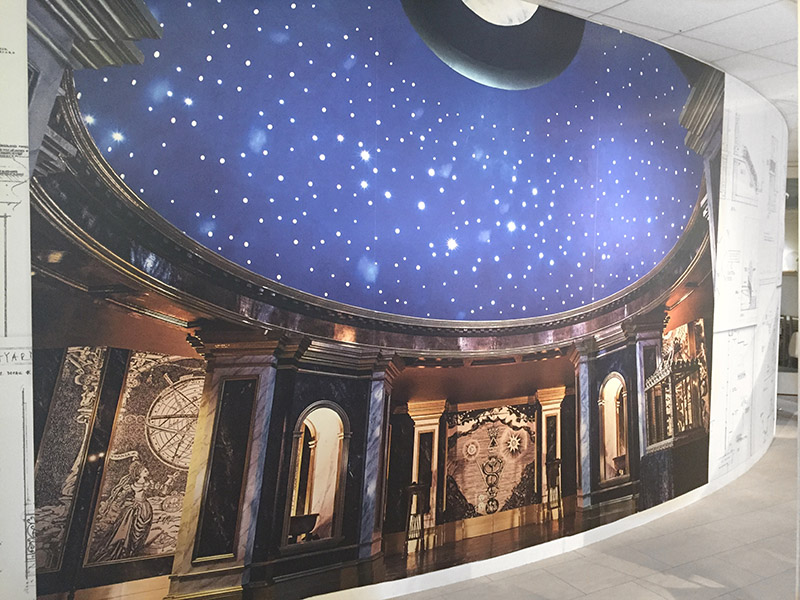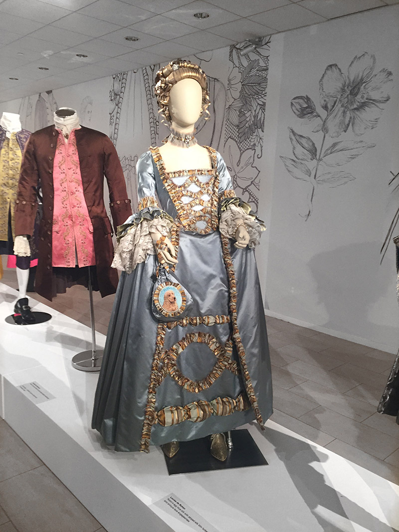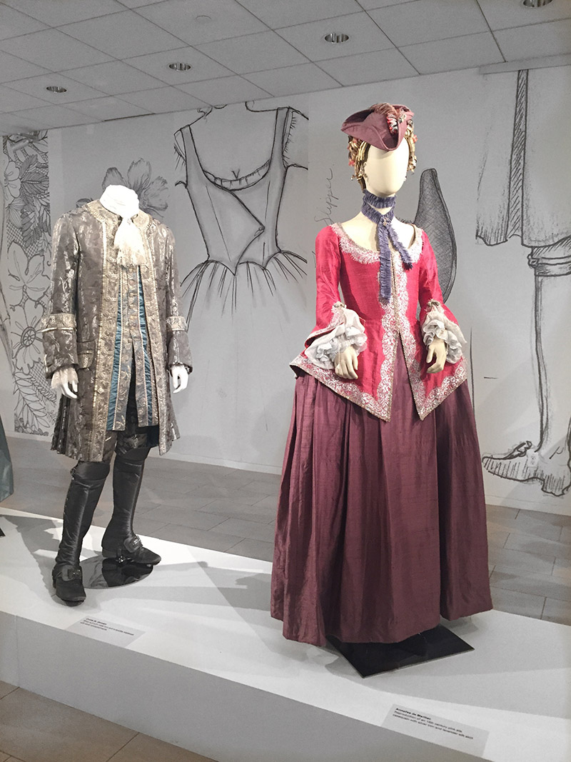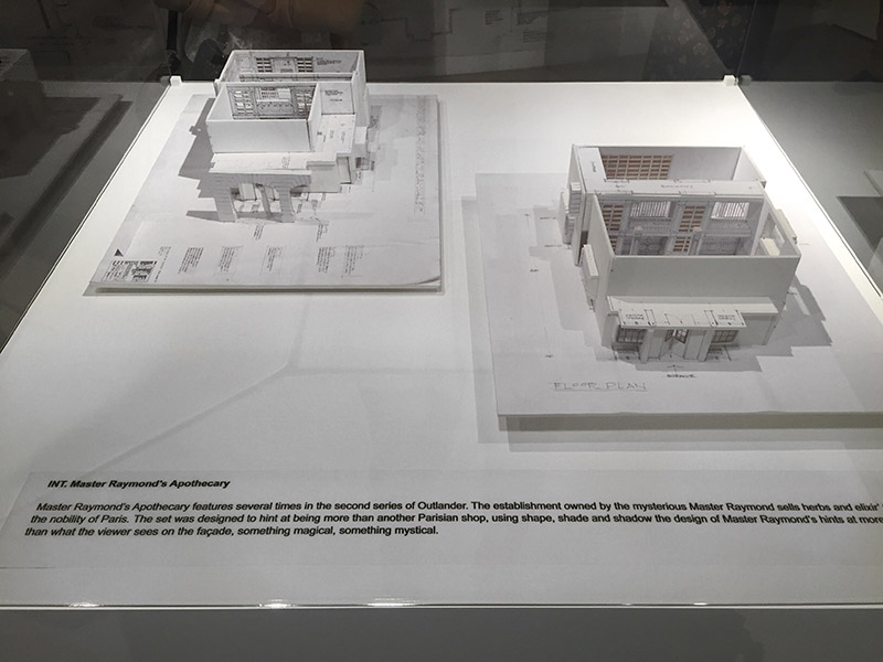 We headed up the first flight of stairs to arrive on the second floor where even more costumes were being displayed, as well as renderings and models of sets from Paris. Specifically, the Star Chamber and Master Raymond’s Apothecary; my two favorite sets in Paris.