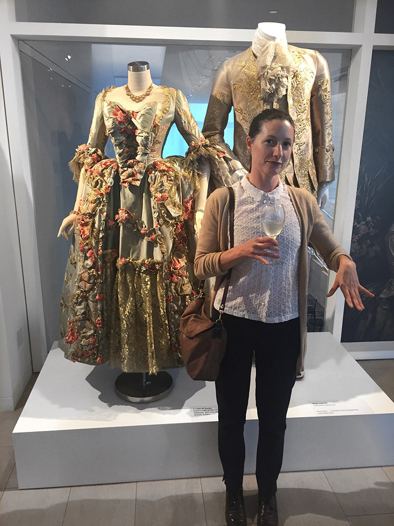Terry also talked about how green her team is . . . green meaning “new or fresh” as in fresh out of art school and inexperienced in the work force. It was astounding, hearing the extent to which her team had to go to learn, implement, and surmount each obstacle as it came to them with the costumes they had to create for Paris. We learned that they even hand-painted fabric designs.
