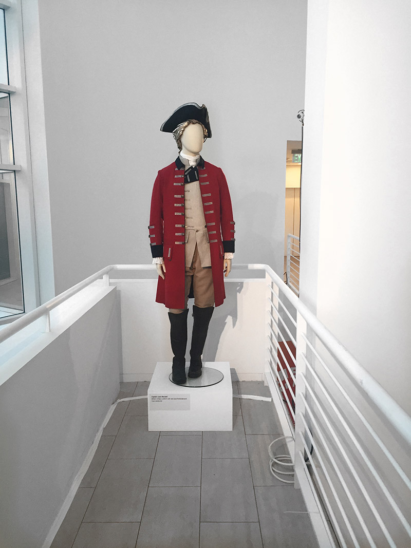Upon entering the Paley Center, we noticed Outlander costumes displayed throughout the building on multiple levels.