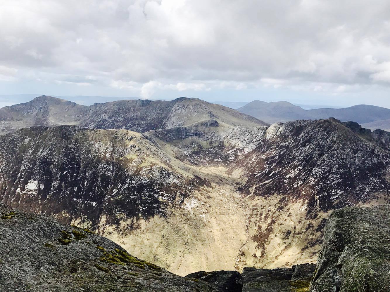 One thing I couldn’t help but notice as we drove out of the ferry terminal, however, was the very large and looming Goat Fell mountain dead ahead. I shuddered a little staring at it. It was hard to look away, actually. It looked foreboding – with dark, black clouds near the summit. It was my first up-close and personal view and did not seem at all as friendly as many of the photos I had seen. Quite shear and rocky, the mountain jutted upwards from sea level narrowing into an angular tip at the summit surrounded by boulders on all sides. This was our challenge, however, to make sure we got up Goat Fell at least one of the days we were on the island. I thought I was ready… but didn’t think it would be so soon. Here is our story of climbing the merciless Goat Fell.