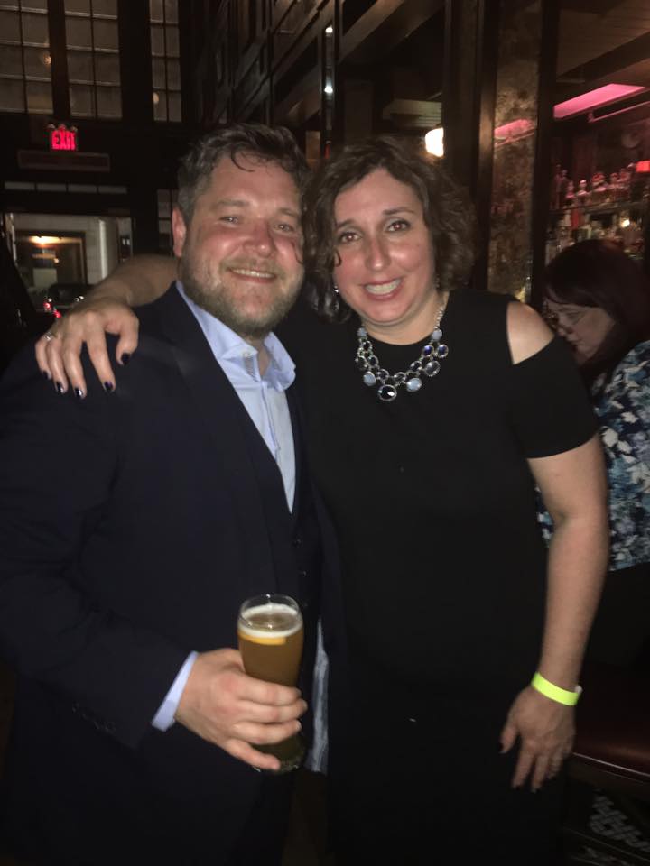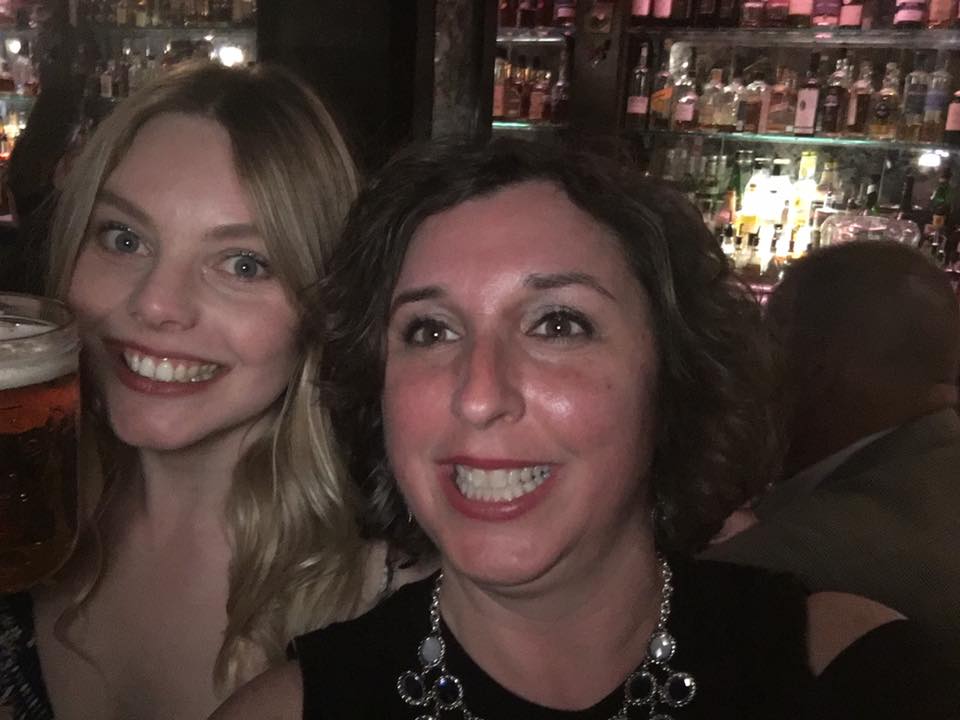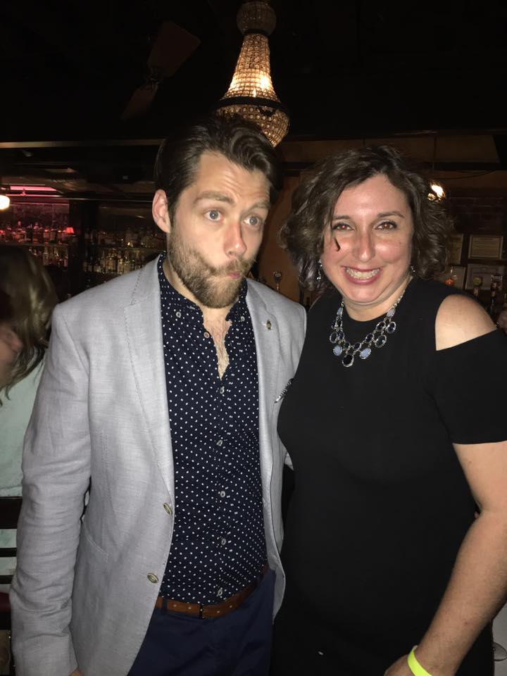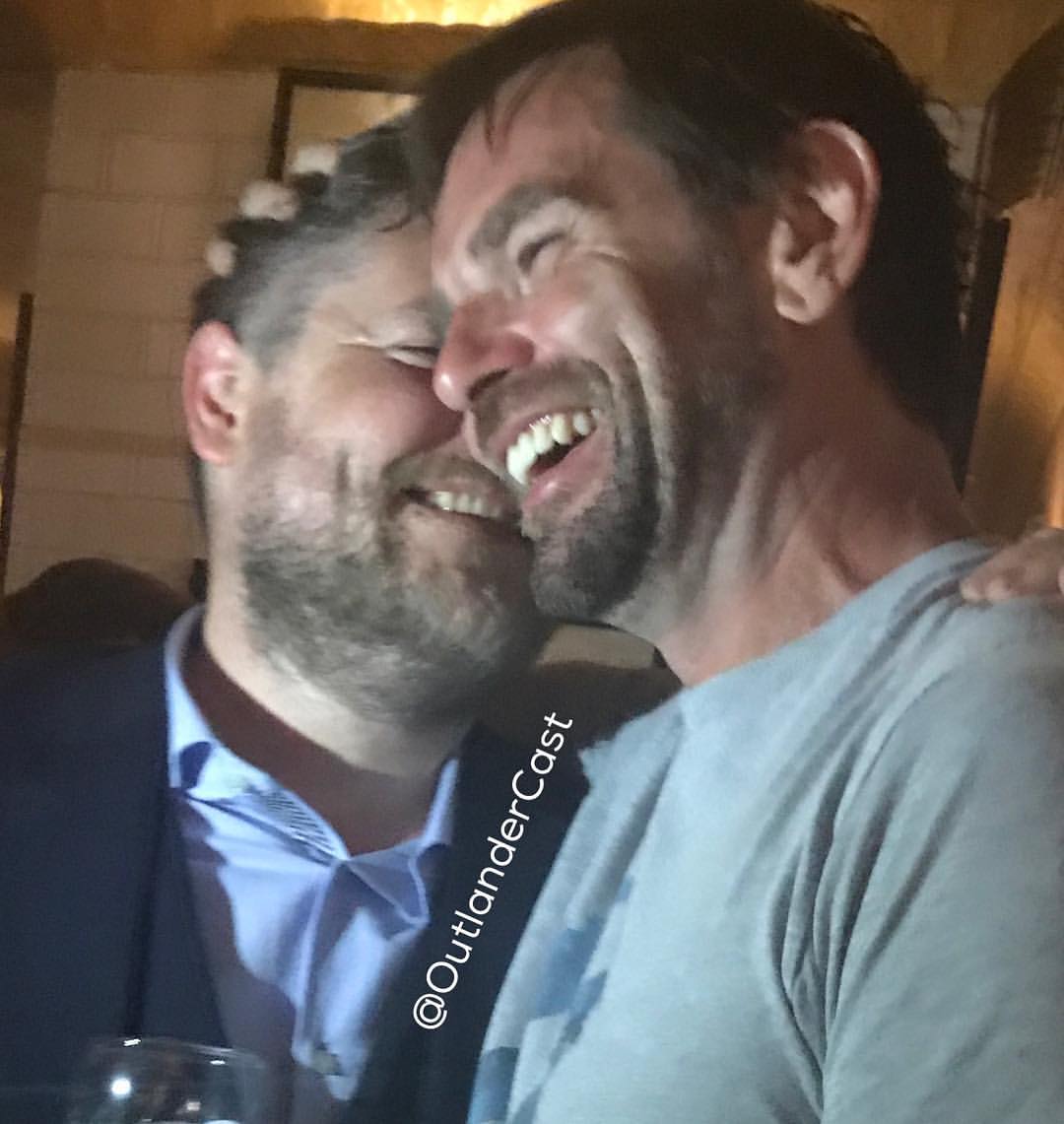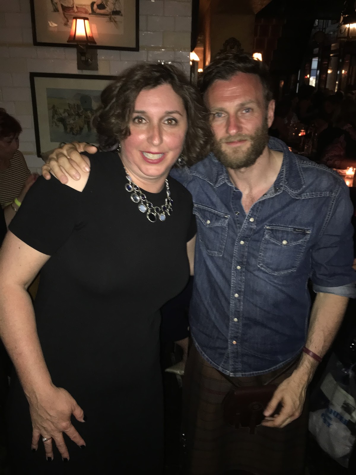 I had continually missed the opportunity to meet Grant O’Rourke. He spent all his time on the first visit to our table attempting to grasp the knowledge that Blake was not there. Near the end of the night, I finally caught him in a free moment and asked for a photo. I tried twice to take a selfie and both pictures were terrible. It seems that my lack of coordination had diminished over the course of the night for reasons that I understand but probably don’t need to elaborate on as I believe I was not the only person in the restaurant experiencing such difficulties. What happens at Outlander in the City stays at Outlander in the City. Right? Back to Grant, he laughed at my failed attempts and handed my phone to someone and asked them to take our picture. I have no idea who you were, but if you’re reading this thank you. This is probably my favorite cast photo.