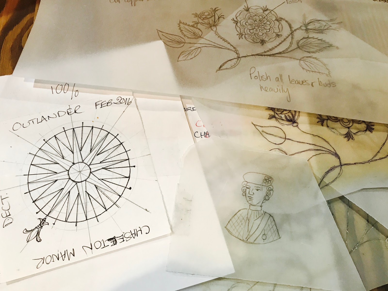 I had met Lesley in the winter of 2017 in Washington, DC. She had accompanied another friend of a friend from Scotland on a quick business trip. We all met for lunch and I was delighted to find out that Lesley was an Outlander fan AND had a good friend who had engraved many of the Jacobite glasses used in Outlander Season 2. Lesley and her friend, Wilma Mackenzie, met us for a late afternoon coffee in Oban and I was absolutely blown away with Wilma’s story about her involvement with Outlander, not to mention her exquisite work. Glass etching/engraving is a precise and delicate art. Wilma had been contacted by a prop manager from the Outlander production and was given only a few weeks to create the etchings on the Jacobite glasses used by Bonnie Prince Charlie (brilliantly played by actor Andrew Gower) and others in many of the Paris scenes during Season 2. She brought some of the original art she used to create the glasses as well as examples of some of her other work. Truly spectacular. It recalls once again; how wonderful Outlander has been for local artisans and businesses in Scotland. Not only is the production contributing to the Scottish economy and the pockets of many local artists but also striving for authenticity and historical accuracy. It was such a pleasure meeting Wilma and hearing her magical Outlander story. Look for more on Wilma and her experience with the Outlander production in a future blog post!