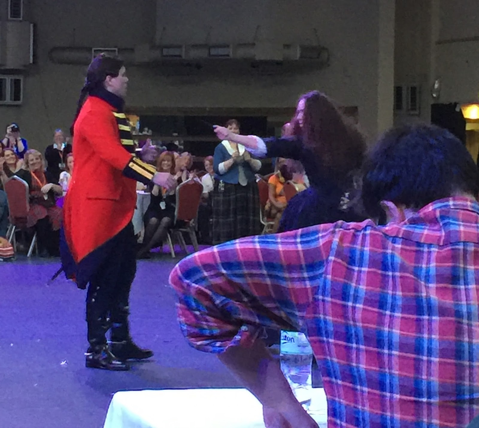 I arrived and immediately felt a little bit daunted until I got talking to the woman next to me in line, Paula, (from Loveland, Colorado) and the scene was set for a friendly fun time and the opportunity to meet people from ALL over the world. Finding my Outlander Cast Clan buddies proved to be not so easy, though. The WiFi for the hotel was spotty and my own data reception was poor, so electronic communications were really sporadic.
